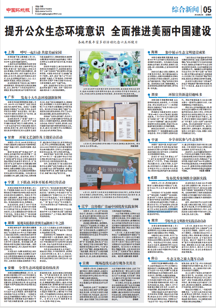 六五环境日期间,沈阳市生态环境局联合多部门开展六五环境日沈阳市主场活动、环保设施向公众开放、环保志愿者服务、新闻媒体纪念六五环境日评论员文章和关注六五环境日专题报道等多种形式的主题宣传实践活动,向公众充分展示美丽沈阳建设成就。