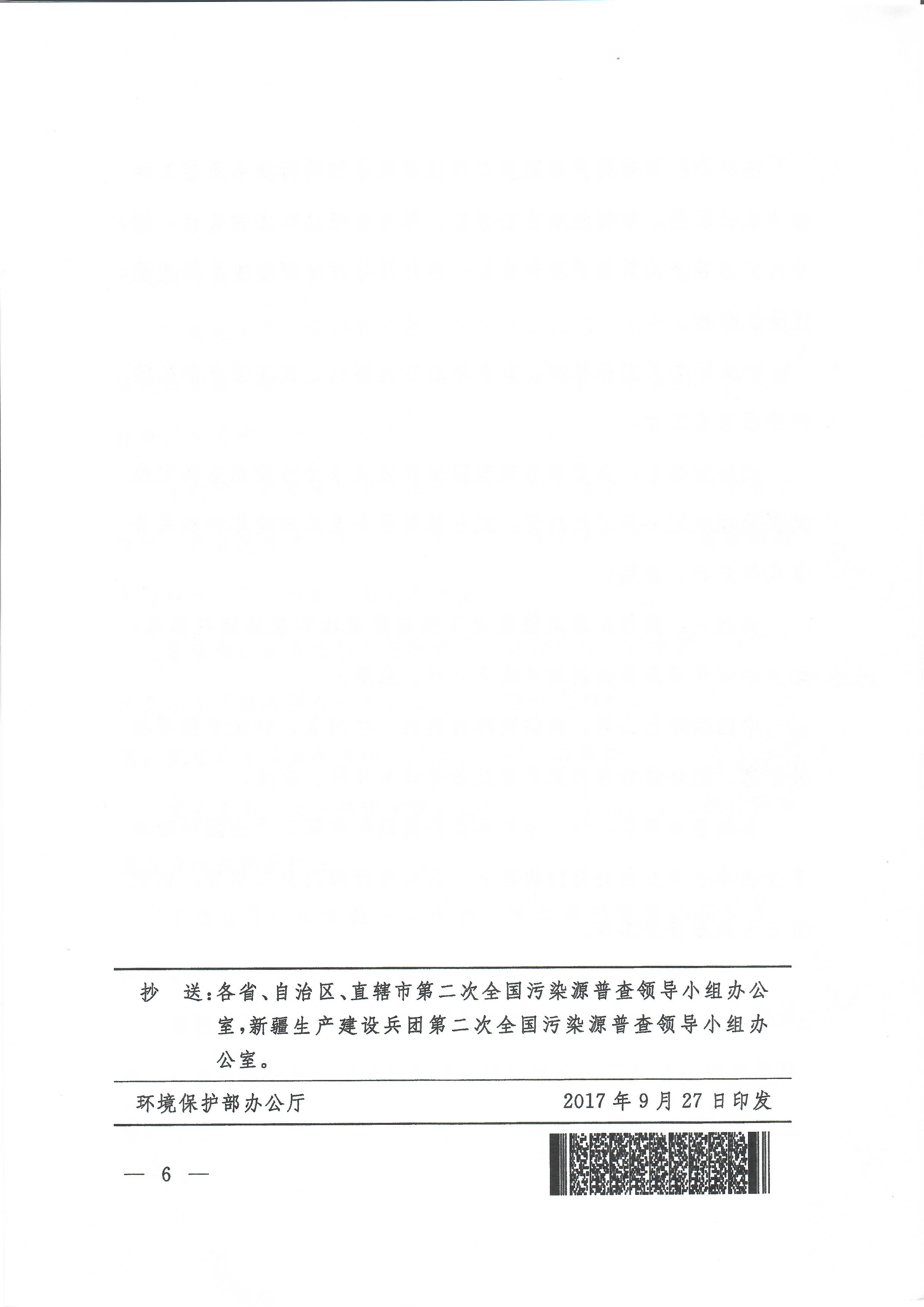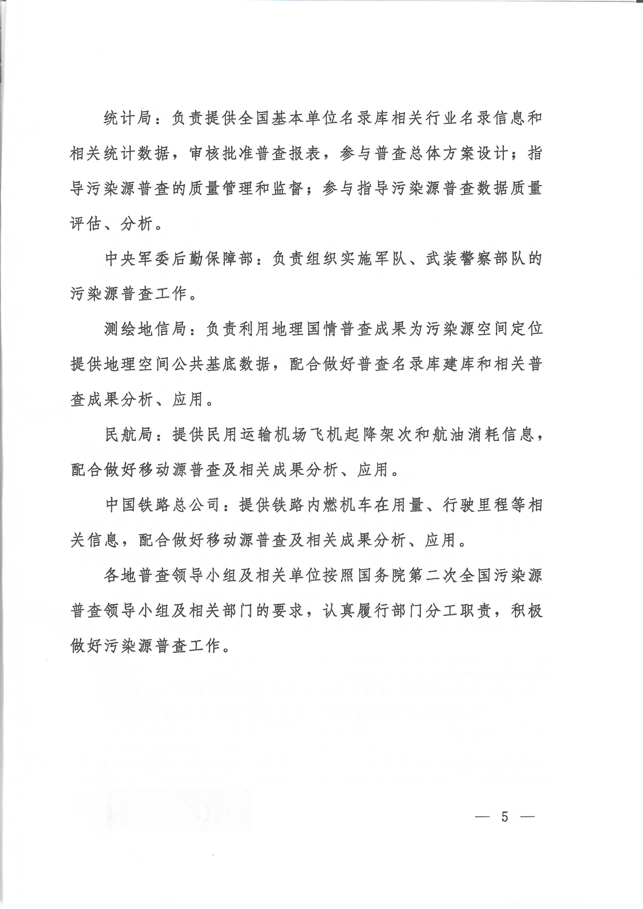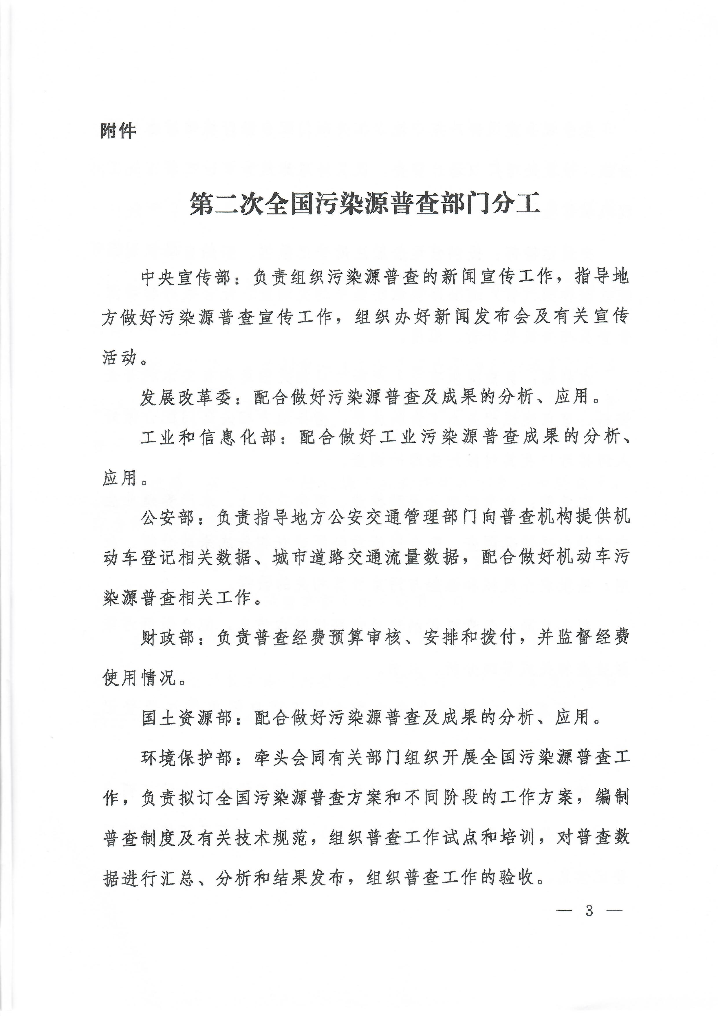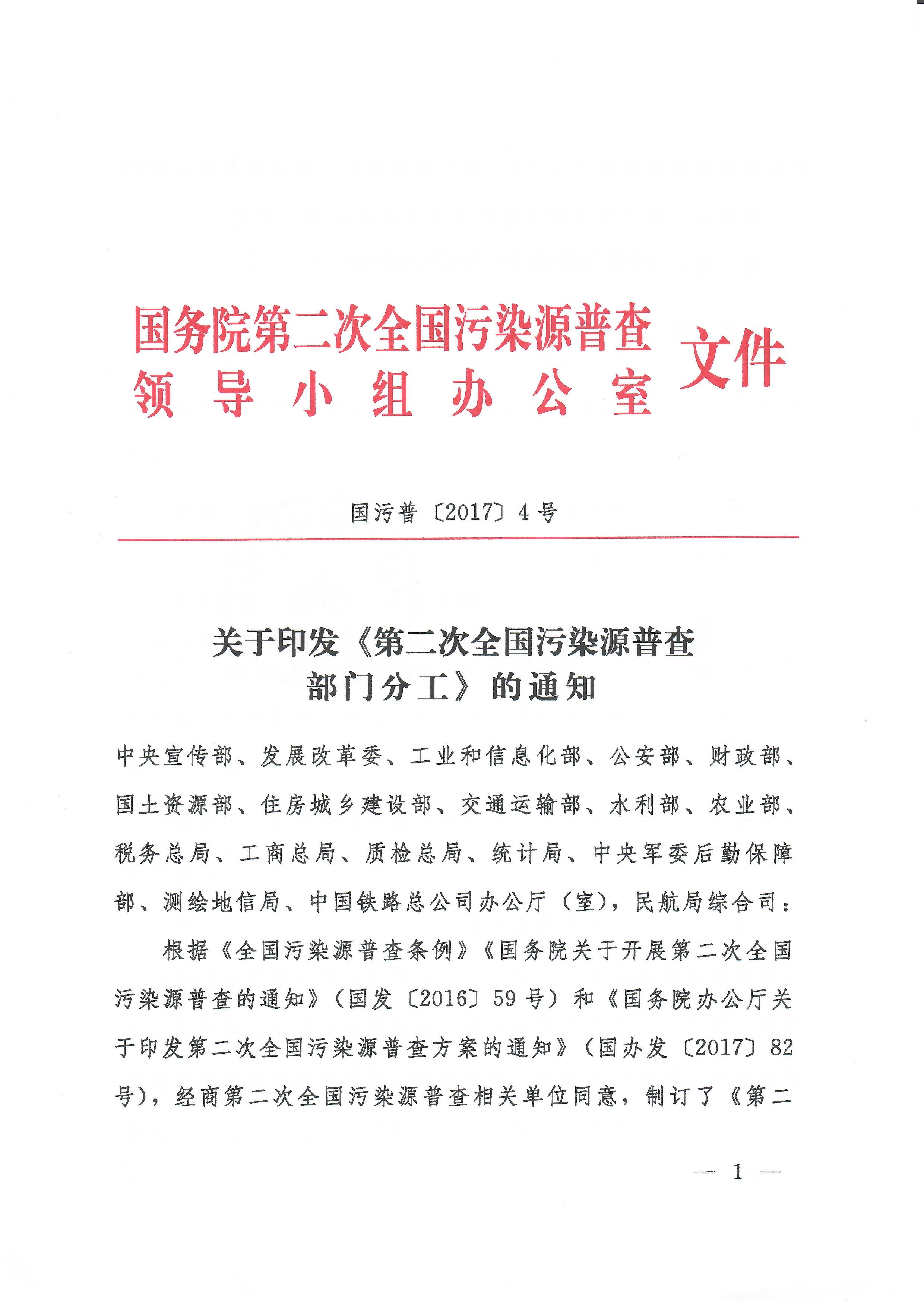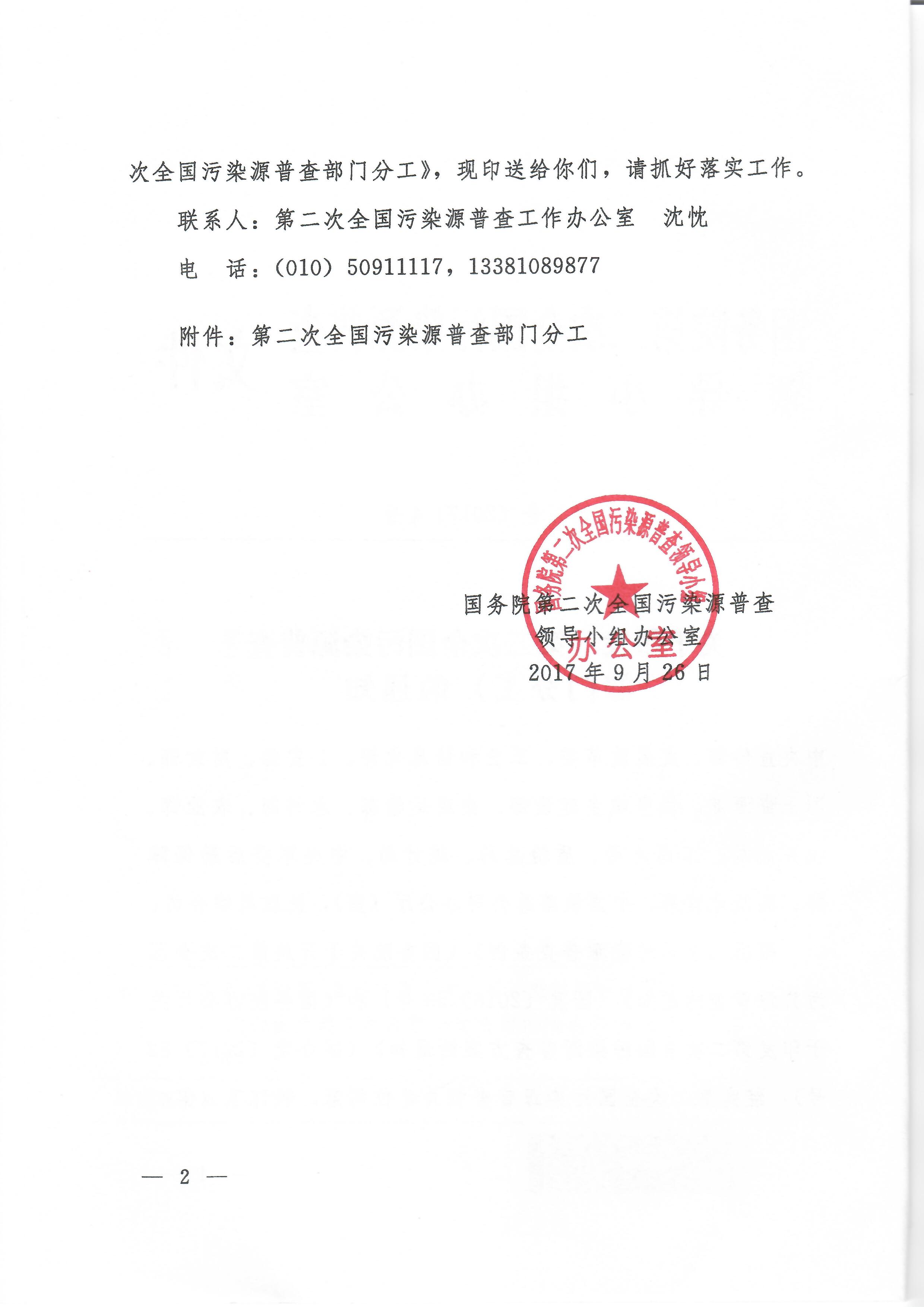 关于印发《第二次全国污染源普查部门分工》的通知