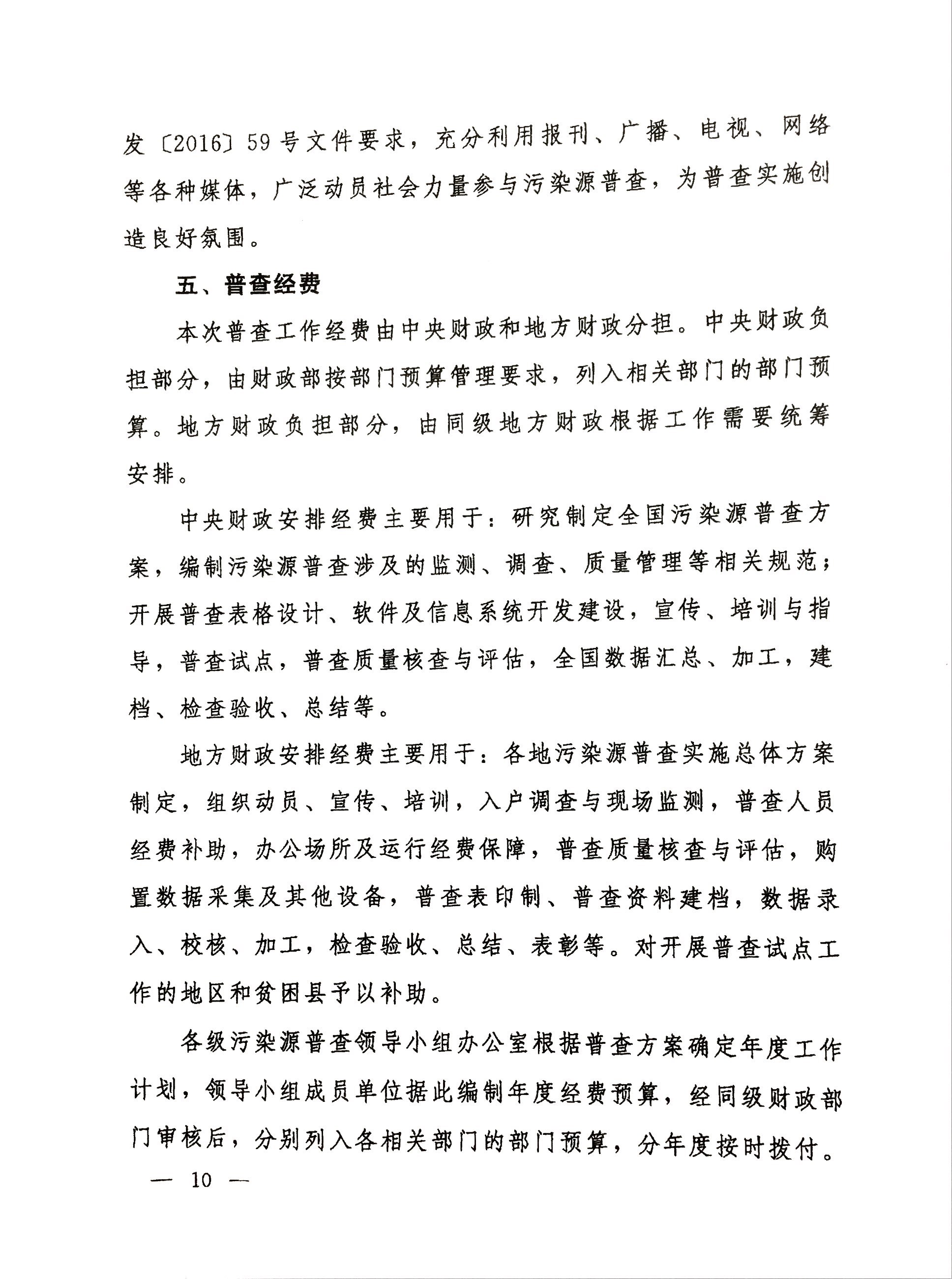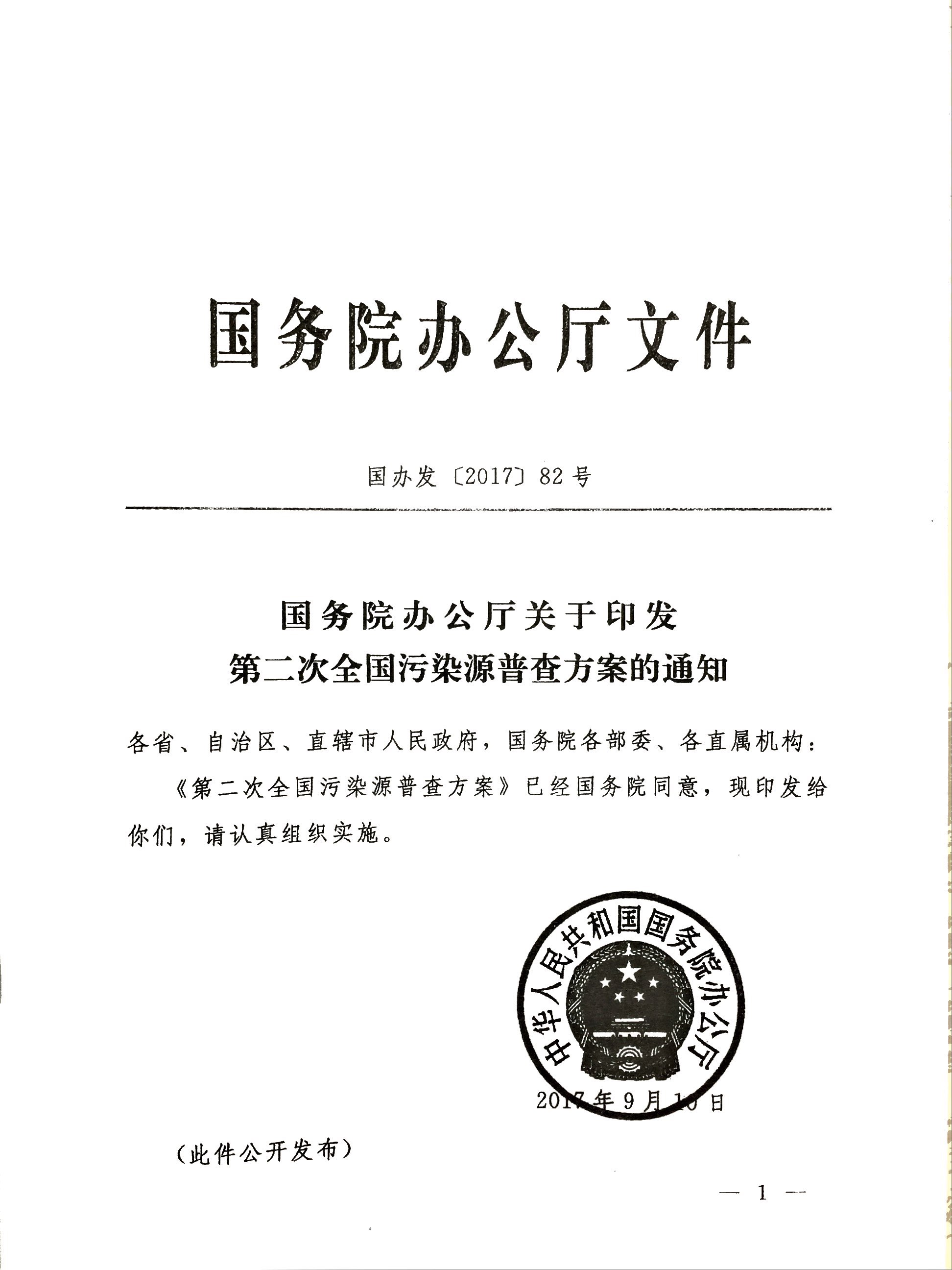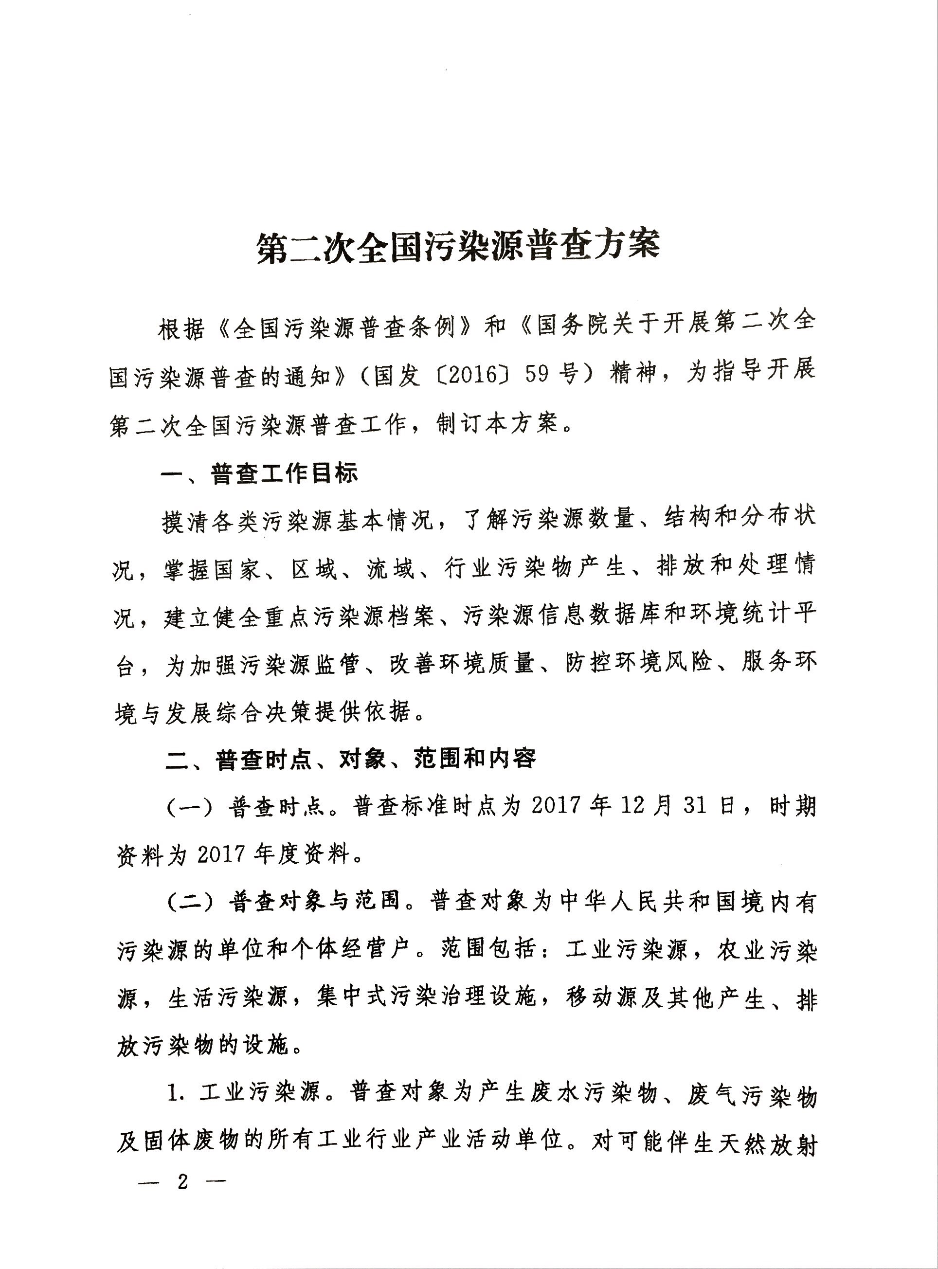 国务院办公厅关于印发第二次全国污染源普查方案的通知